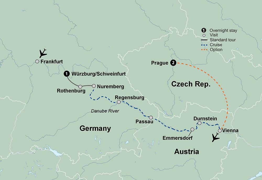 Welcome the winter season with a timeless trip down the Danube River. Board your cruise and relax as you are transported along beloved cities, where age-old culture is interwoven into seasonal specialties. Peruse handcrafted trinkets, traditional sweets, and infectious holiday cheer as you make your way though some of Europe's most renowned Christmas markets. Your holiday tour begins with an overnight flight to Germany.