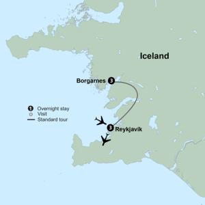 Travel west along Iceland's coast to the fishing town of Akranes at the foot of Akrafjall Mountain. Visit the picturesque lighthouse, climb the stairs to take in views over the bay if you wish,* and take time for a leisurely walk along the historical harbor if you choose. Feel the power of the earth at Deildartunguhver, the highest-flowing hot spring in Europe, and stroll along wooden walkways to explore the hot springs safely. Later, get to know the world-famous Icelandic horse breed as you visit friendly horses at the stables of a family-run farm, and learn how geothermal energy is used in daily life, from baking rye bread to heating homes and stables. This evening, arrive in Borgarnes, your home for the next three nights and an ideal setting for seeking the northern lights.