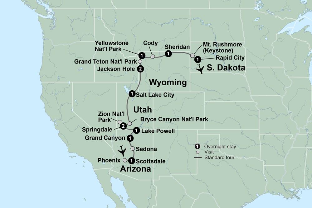 A delightful day of sightseeing begins with a trip along Yellowstone Lake and over Sylvan Pass. As you pass through Cody, stop at the Buffalo Bill Center of the West, a tribute to one of the most well-known figures of the Old West. Before turning in for the night in Sheridan, drive through the incredible Bighorn Mountains and journey through the territory of the Great Sioux Nation.